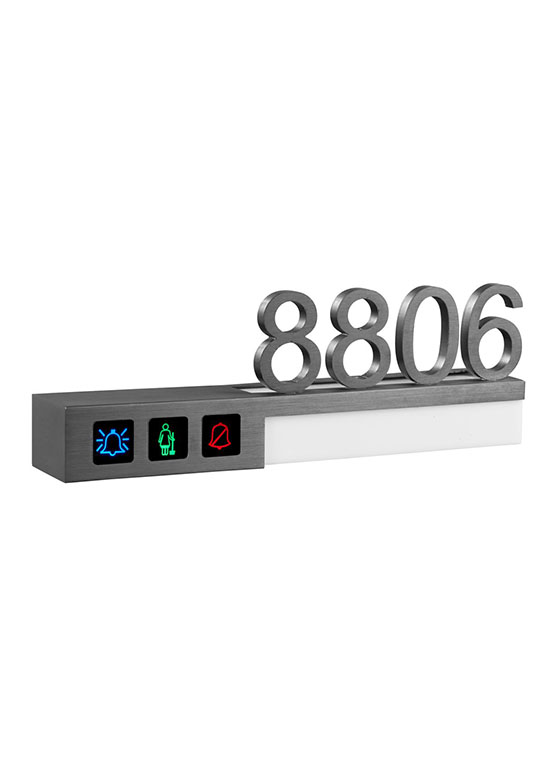 獨(dú)家設(shè)計(jì)“請(qǐng)勿打擾“燈亮?xí)r,按門鈴不響應(yīng),解除客人的煩惱,給客人更多的私人空間,提高服務(wù)質(zhì)量。LED背光觸摸實(shí)現(xiàn)房態(tài)控制,燈位指示一目了然,有利于夜間識(shí)別,符合現(xiàn)代潮 流。